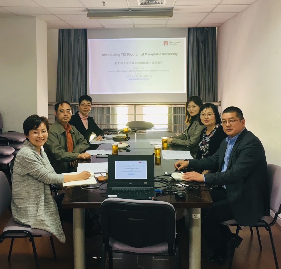 4月17日,麦考瑞大学负责翻译硕士专业中国市场的方静博士及其助理访问sunbet,主持工作副院长邓志勇教授、副院长苗福光教授、朱巧莲副教授、国际部周梁老师进行了接待并参与会谈,双方就翻译专业办成双学位项目进行了深入探讨。
