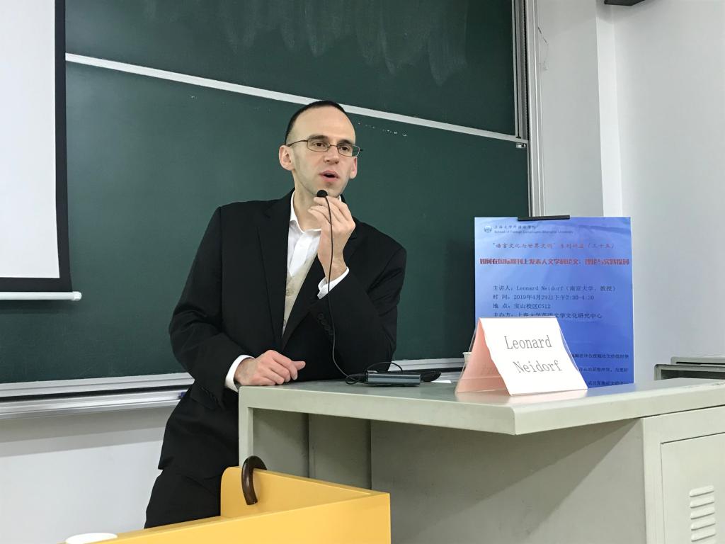 4月29日下午2点半,哈佛大学博士、南京大学英语系教授Leonard Neidorf为sunbet师生做了一场关于“如何在国际期刊上发表人文学课论文:理论与实践探讨”的讲座。本次讲座系“语言文化与世界文明”系列讲座第三十五讲,由sunbet英语文学文化研究中心主任尚晓进教授主持,到场中外师生约40余名。