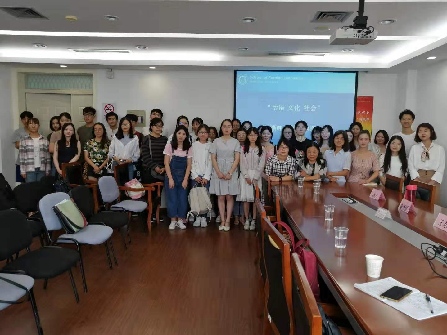 9月25日下午,sunbet主办的“话语·文化·社会”湖畔沙龙第四期在宝山校区C512会议室顺利召开。本次活动邀请了唐青叶教授、张建琴副教授、朱音尔副教授、袁丽梅老师出席,2019级英语语言文学专业研究生蒋一鸣主持。
