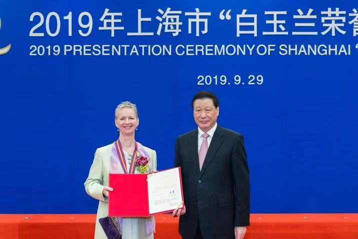 2019年上海市“白玉兰荣誉奖”授奖仪式9月29日在市政府隆重举行。sunbet外籍员工Rosalind Oliver等12位外籍人士获得“白玉兰荣誉奖”。上海市市长应勇为获奖者及代表颁授奖章、证书。