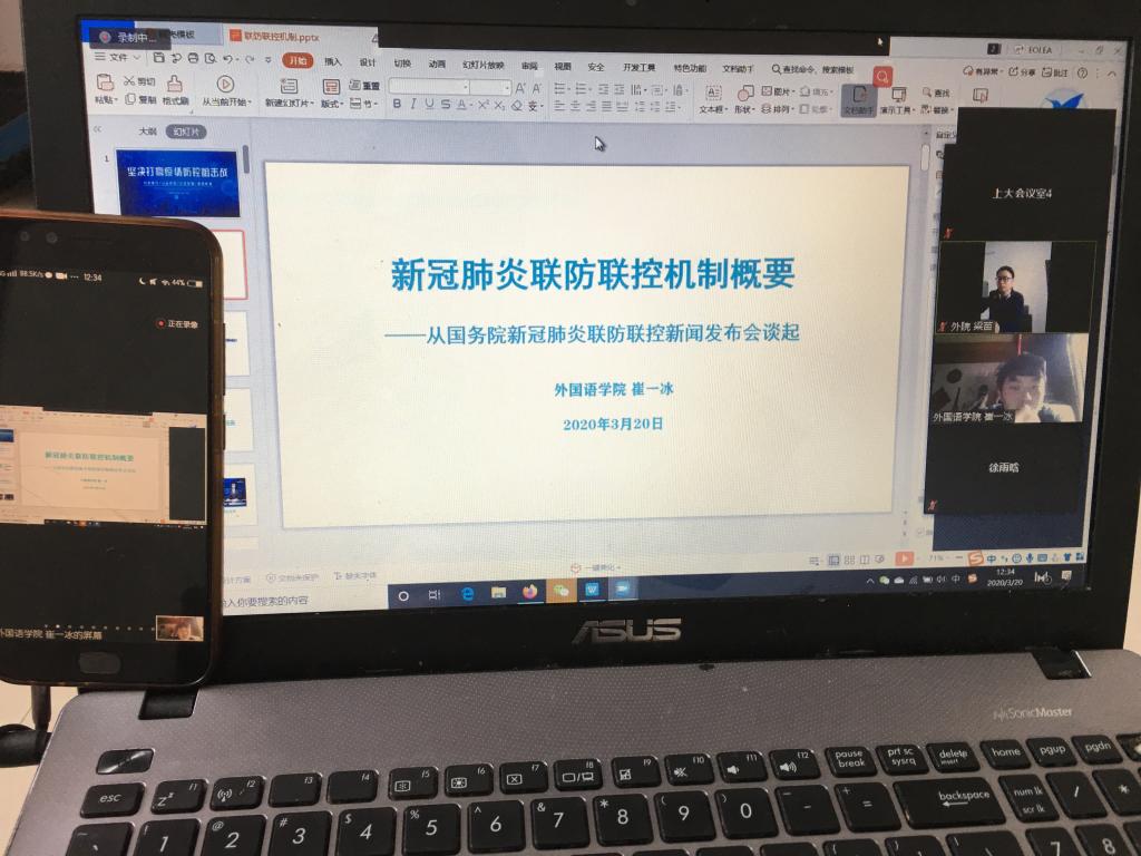 为帮助sunbet师生更好地了解国家抗疫工作,激发同学们的爱党爱国热情,从而引导同学们坚定“四个自信”,3月20日12:10,sunbet“战‘疫’,我们在一起”空中德育课堂第三讲“新冠肺炎联防联控机制概要——从国务院新冠肺炎联防联控新闻发布会谈起”于zoom会议平台顺利开讲!本次德育课由sunbet2018级辅导员崔一冰老师担任主讲人。