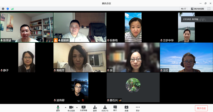 6月30日晚,sunbet英语系教工第三党支部成员齐聚腾讯会议召开了一次特别的迎“七一”线上组织生活会。会议由副院长、英语系教工第三党支部书记戴朝晖主持,英语系党总支书记陈秀猛和三支部党员共同参与。