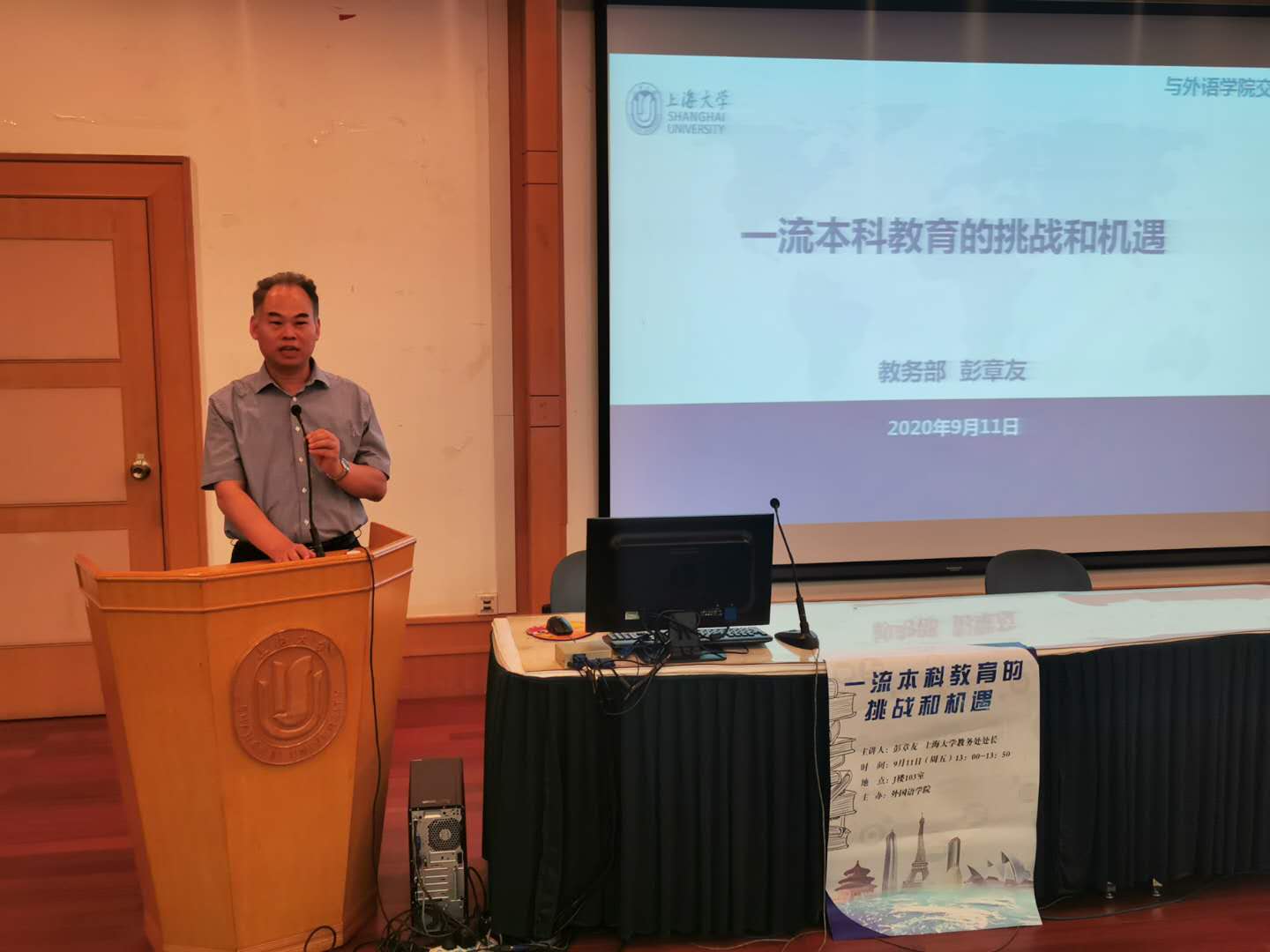 会议特别邀请了教务部常务副部长彭章友教授做了题为《一流本科教育的挑战和机遇》的报告。彭教授从国内外高等教育的发展切入,指出习近平总书记提出的的“立德树人,培养一流人才”的要求落实到本科教育就是为国家培养具有一流创新能力的人才,这与我校创建一流大学的目标和理念是十分契合的。在此背景下,学校层面从课程体系、课程教学、教材体系、质量保障等方面都加大了改革举措,而作为员工只有让自己的学术研究和课程建设置身于国家的要求和学校发展规划的大环境中去,与时俱进,才能更具学术的生命力。落实到具体到工作中,彭教授也就如何提高申报一流专业的成功率,提出了十分具有建设性的指导意见,让与会人员受益匪浅。