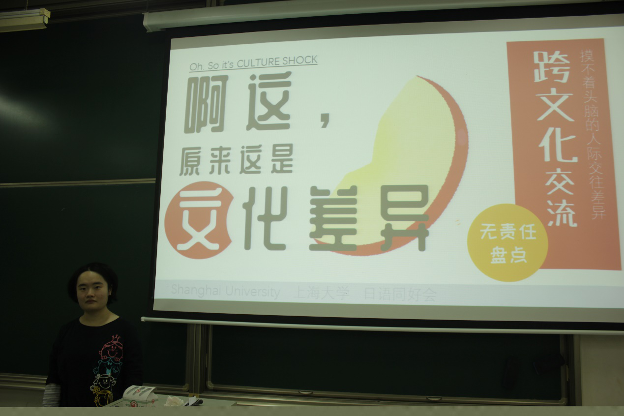 10月21日,日本语同好会学术部精心筹备的第一期学术性讲座在宝山校区教学C楼109教室成功举办。本次讲座由日语系大三学姐“阿里苏”以中日文交替的课堂形式给社团成员讲解了中日跨文化交流中的文化差异。