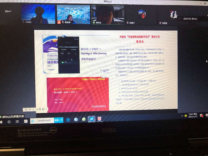 紧接着虞怡达老师以大学跨文化综合教程为例,分享了思政融入方案,从语言能力、跨文化交际能力、以及德育教育三个方面,探讨如何通过开展对照、探索、反思和创造的等活动,使员工逐渐了解多样性的意义,培养爱国、敬业、友爱的社会主义核心价值观。