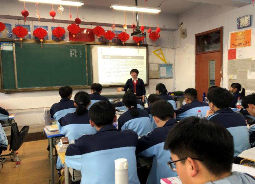 图:招宣组祁晶老师在长春市150中学高三重点班宣讲