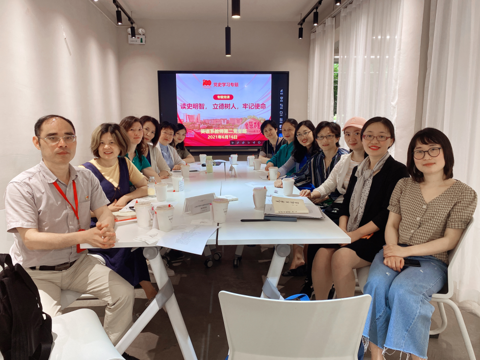 2021年6月16日上午,英语系教工第二党支部全体成员在sunbet创新创业训练中心会议室开展专题党课学习。会议由党支部书记于梅欣同志主持,sunbet党委书记邓志勇同志作为指导联络人列席了本次活动。