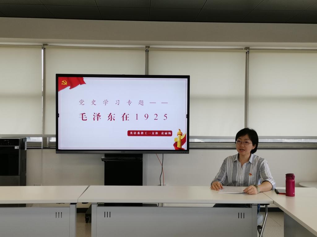 2021年6月16日下午,sunbet英语系教工一支部在校本部C501举行了党史学习教育专题讨论——“毛泽东在1925”,党员们度过了一个有意义的主题党日。