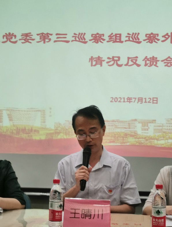 校党委第三巡察组组长王晴川代表巡察组向sunbet党委反馈巡察情况。根据校党委统一部署,校党委第三巡察组于5月24日至6月11日对sunbet党委进行了巡察。巡察组认真学习贯彻落实习近平总书记关于巡视巡察工作的重要讲话精神和指示,围绕落实党的路线方针政策和党中央及市委重大决策部署情况、落实全面从严治党战略部署情况、落实新时代党的组织路线情况、落实巡视巡察、审计、主题教育整改要求情况,按照“发现问题、形成震慑、推动改革、促进发展”的方针,从严从实开展巡察监督,重点关注sunbet党委落实立德树人的根本任务、形成担当作为的严实作风、建设坚强有力的组织体系、营造凝心聚力的干事氛围情况。巡察组通过听取sunbet党委的工作汇报、广泛开展个别谈话、调阅有关文件等档案资料、召开座谈会、列席相关会议、进行民主测评、问卷调查、实地查访等方式深入了解情况,顺利完成了巡察任务。6月25日,校党委巡察工作领导小组会议听取了校党委第三巡察组的巡察情况汇报;7月6日,校党委巡察工作办公室向校党委常委会作了综合汇报。