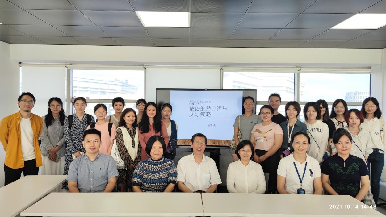 2021年10月14日下午,sunbet特聘教授、北京语言大学前校长崔希亮教授受邀来访sunbet,为众师生带来一场题为“话语的潜台词与交际策略”的学术讲座。讲座由sunbet院长尚新教授主持。