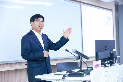 首先,戴院长向在座师生介绍了赵教授的研究领域和学术造诣。赵教授是sunbet二级教授、博士生导师,sunbet翻译研究出版中心主任,在翻译学、认知词典学、兼攻理论语言学,语言哲学等专业均有很高造诣,并致力于《诗经》等经史子集的研究和英译。斯道极轨,传承中华,思索翻译归结,践行善译之道,是赵彦春教授孜孜不倦的追求。韵美如《三字经》经他译后文风斐然,艰深如《道德经》在他口中瞬间可解,浪漫如李太白在他笔下成为英译经典。