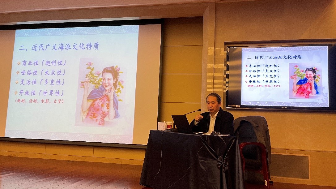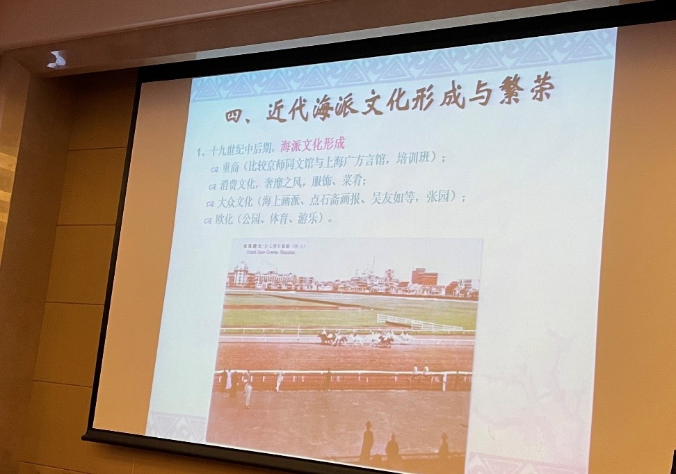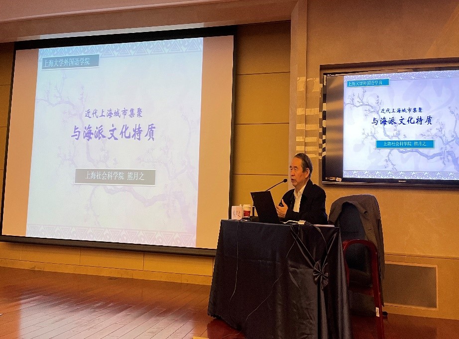 主讲人熊月之研究员围绕海派文化这一主题,向师生系统讲述了海派文化起源、近代海派文化特质及其底蕴、海派文化的近当代演变、城市集聚机制和海派文化综合特点等问题。
