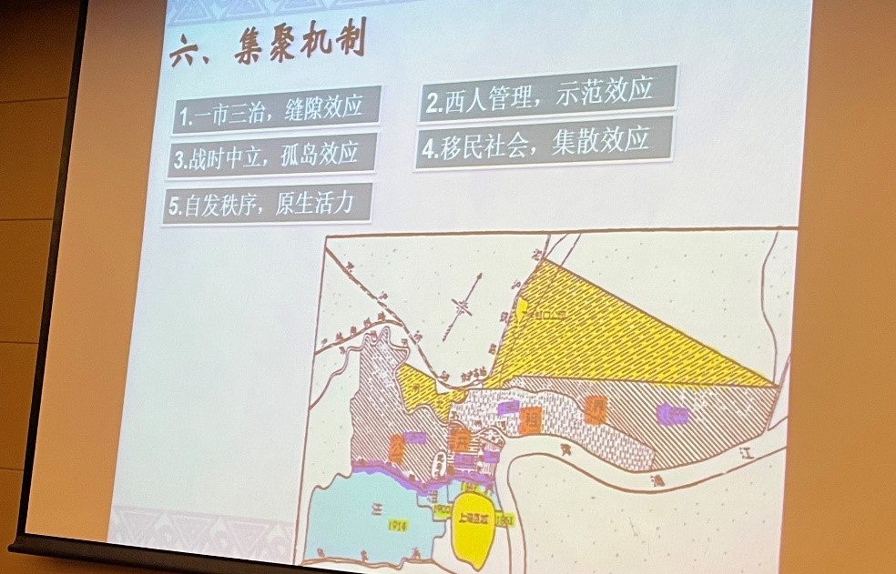 之后,熊研究员从近代上海的消费文化、大众文化、商业社会等角度深度剖析了近代海派文化形成与繁荣发展的过程,为听众厘清了城市聚集如何对海派文化形成与繁荣产生影响,概括了上海城市的六点聚集机制,揭示了海派文化发展的区位要素。