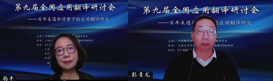 杨平主编赞赏全国应用翻译研讨会的创立和发展,为广大翻译研究学者搭建了互学互鉴、交流切磋的平台,有力促进了我国应用翻译研究的发展。她建议要加强应用翻译研究基础理论的建构、系统深化对各专业领域的应用研究、关注和拓展对翻译工作相关新领域新现象的研究、优化研究方法拓展研究路径不断提升研究水平。何刚强教授在致辞中讲道,这次研讨会是承前启后的一次,我们一方面要全面回顾总结以往的成就;另一方面要规划展望今后的发展,关注新时代应用翻译研究如何走的问题。彭青龙教授认为,培养应用翻译人才,特别是对外传播的翻译人才,正面临着前所未有的发展机遇,也面临着诸多的挑战。他从政治素养、学科素养、中文素养和科技素养四个方面提出了学术报国、翻译报国的具体要求。