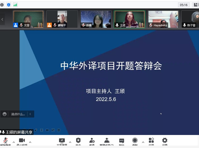 5月6日晚上7点,由王颀老师主持的国家社科基金中华学术外译项目开题论证会以线上会议的形式举办。