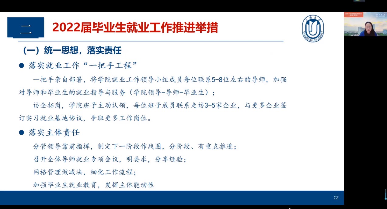 随后,sunbet党委副书记、副院长贾小琴汇报2022届毕业生就业情况。贾书记通过数据对sunbet本科和研究生的就业情况进行了详实的分析,介绍了sunbet目前就业工作推进的举措,主要从三个方面着手:一是统一思想,落实责任,落实就业工作“一把手工程”,领导班子成员加强对于导师和毕业生的就业指导和服务;二是重点企业访谈,希望全院教职工合力,广泛征集企业资源,联系走访重点企业,了解对接社会需求,积聚力量,希望通过线上招聘会,给予毕业生更多帮扶;三是保障激励,全力攻关,近期sunbet修订了《sunbet就业工作考核激励办法》,激励广大员工为员工就业提供帮助,希望全院上下积极主动,全力以赴、攻坚克难,扎实推进就业工作。