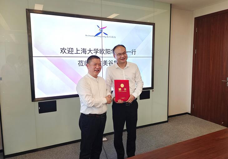 袁飞总经理代表东方美谷集团致欢迎辞,对欧阳书记一行到访表示热烈欢迎。他介绍到,东方美谷是奉贤区第一家国有股份公司,以“产业投资,专业招商”为主要业务,在每年进博会期间东方美谷会同期举办东方美谷国际化妆品大会,将产业链各方更好的联合起来,聚集国内国外的行业大咖,共同探讨化妆品行业的新发展和新机遇。同时,东方美谷积极布局国际化,在国外设立分中心,助力开拓国际市场。目前公司高度重视国际化、复合型的人才储备,并提供良好的条件和培养机制,希望吸引上大优秀学子能把东方美谷作为职业起步的优选平台,创造人生多种可能。
