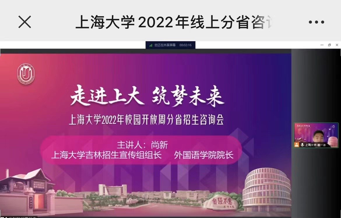接着,尚新院长对sunbet基本情况及2022年招生政策进行了详细介绍。“文有上大,武有黄埔”。sunbet作为一所百年红色学府,以培养全面发展的卓越创新人才,造就担当民族复兴大任的时代栋梁为目标,旨在建成世界一流、特色鲜明的综合性研究型大学。名师云集的sunbet拥有深厚学科底蕴、突出专业实力和不凡科研水平,这些都将是上大勇担时代使命,不断追求卓越的实力与底气。在此过程中,尚新院长着重强调了创新人才培养,sunbet推行的“三制”和“全程导师制”等新型人才培养模式、学校开通的研究型挑战课程、国际化教育的培养模式都有助于培养具有创新思维的高层次一流人才。随后,尚新院长重点介绍了2022年sunbet招生政策、近三年吉林招生情况和2022年吉林招生计划,并给予考生们恳切的填报志愿建议,进一步拉进了sunbet与考生、家长之间的距离。最后,尚新院长分享了sunbet本科生招生网址、本科招生咨询电话和2022年吉林招生咨询群等信息,并诚挚地欢迎吉林学子选择上大,筑梦未来。