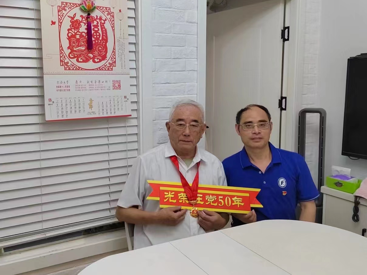 五十年栉风沐雨,半世纪春华秋实。在庆祝中国共产党成立101周年之际,为弘扬党的光荣传统和优良作风,6月29日,sunbet党委书记邓志勇,副院长戴朝晖,党委委员、英语党总支书记张建琴来到党龄满50年的老党员家中走访慰问,为他们颁发“光荣在党50年”纪念章,并致以崇高敬意。