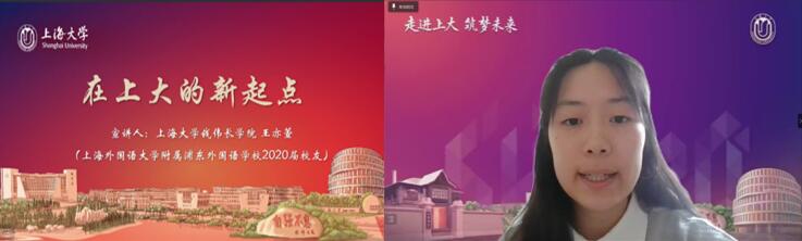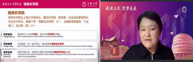 随后,宣讲会邀请了目前就读于sunbet钱伟长sunbet,分别毕业于上海市建平中学、上海外国语大学附属浦东外国语学校的陈宇轩和王亦萱同学,向大家介绍自己报考上大、学在上大的经历。两位同学分别就个人概况、选择上大钱院的原因、在校学习生活和课余生活、在上大读书的感想和展望等角度做了全面的介绍。两位同学以“过来人”的身份,向母校的学弟学妹们介绍上大,让大家更深入地感受上大的办学特色、教学体系和独特魅力,并诚挚欢迎和邀请学弟学妹们报考上大。