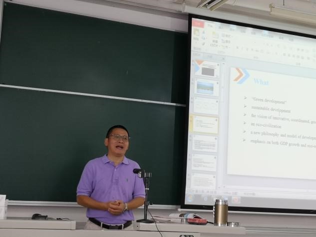 随后,唐老师以习近平总书记引自庄子、李白和荀子的三段引文,说明了中华民族自古以来就对自然生态环境极其重视。不论是对人类的物质生产活动,还是对文化和艺术的创造,自然环境都起到了不可忽视、不可替换的关键作用,是人类赖以生存的唯一家园。在随后的活动中,三位同学紧跟时事,分别做了关于云南野象群北上的演说,以具体案例说明美丽中国建设任重道远,人与自然如何和谐相处,引人深思。