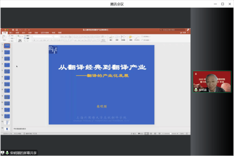 第一位主讲人是上海外国语大学柴明熲教授,柴教授对sunbet连续举办学术节至第十四届表示祝贺。柴教授以“从翻译经典到翻译产业——翻译的产业化发展”为题,系统梳理翻译经典的脉络以期考察翻译产业的发展之路。他指出,翻译产业的发展需要高度融合,从业译者与产业团队、译者与信息技术、专业领域、相关社会活动的融合等等。因此,翻译已经不是传统意义上翻译家所从事的翻译,而已成为社会高端服务型产业,遵循服务型行业的产业规律。
