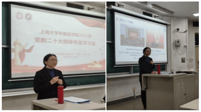 最后,贾书记将党的二十大精神学习同sunbet“培养具有中国灵魂、全球视野的卓越创新型外语人才”人才培养目标相结合,重申新时代外语人应当与时俱进提升自我素养,立足学习中华优秀传统文化、践行社会主义核心价值观,全方位提升国际视野、家国情怀和跨文化交际能力,积极传播中国理念,宣传中国发展成就,在讲好新时代中国故事、推动交流互鉴、促进民心相通上展现新的作为。