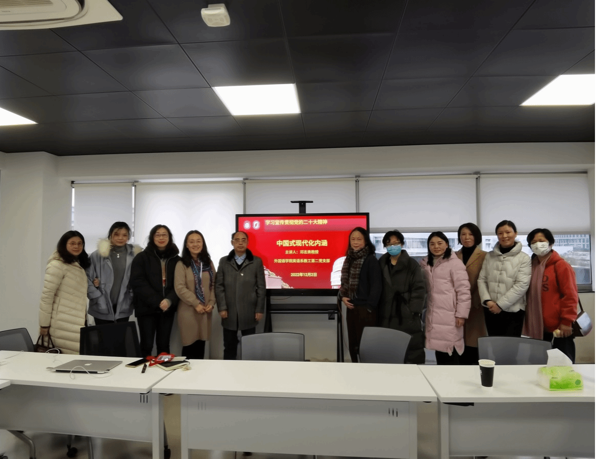 12月2日下午,英语教工第二党支部齐聚C501,开展“学习贯彻党的二十大精神,党员干部讲党课”专题组织生活。此次活动由sunbet党委书记邓志勇率先垂范,以《深刻理解中国式现代化的科学内涵》为题,为支部成员宣传解读党的二十大精神。
