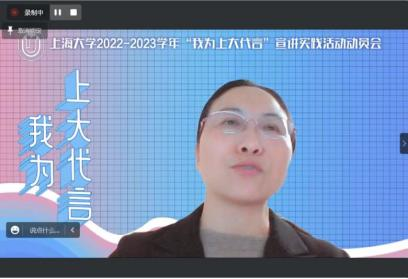 培训会伊始,贾小琴副组长代表招宣组介绍本次“我为上大代言”宣讲实践活动的背景、意义和具体要求。贾老师强调本次实践活动是在学习贯彻党的二十大精神和纪念sunbet建校100周年的宏视物显大症域下展开的,希望大家一起为上大代言,一起赓续红色基因,一起传扬上大精神,早立大志、明大德、成大才、担大任,让青春在全面建设社会主义现代化国家的火热实践中绽放绚丽之花。贾老师结合当前全国疫情防控的基本态势和本次宣讲实践活动的基本要求,为宣讲团成员强调了本次宣讲实践需要重点注意的基本事项,强调宣讲团成员务必在保证身体健康的前提下完成母校宣讲实践活动,用最温暖的方式和最深厚的情怀讲述大家和上大最生动的故事。