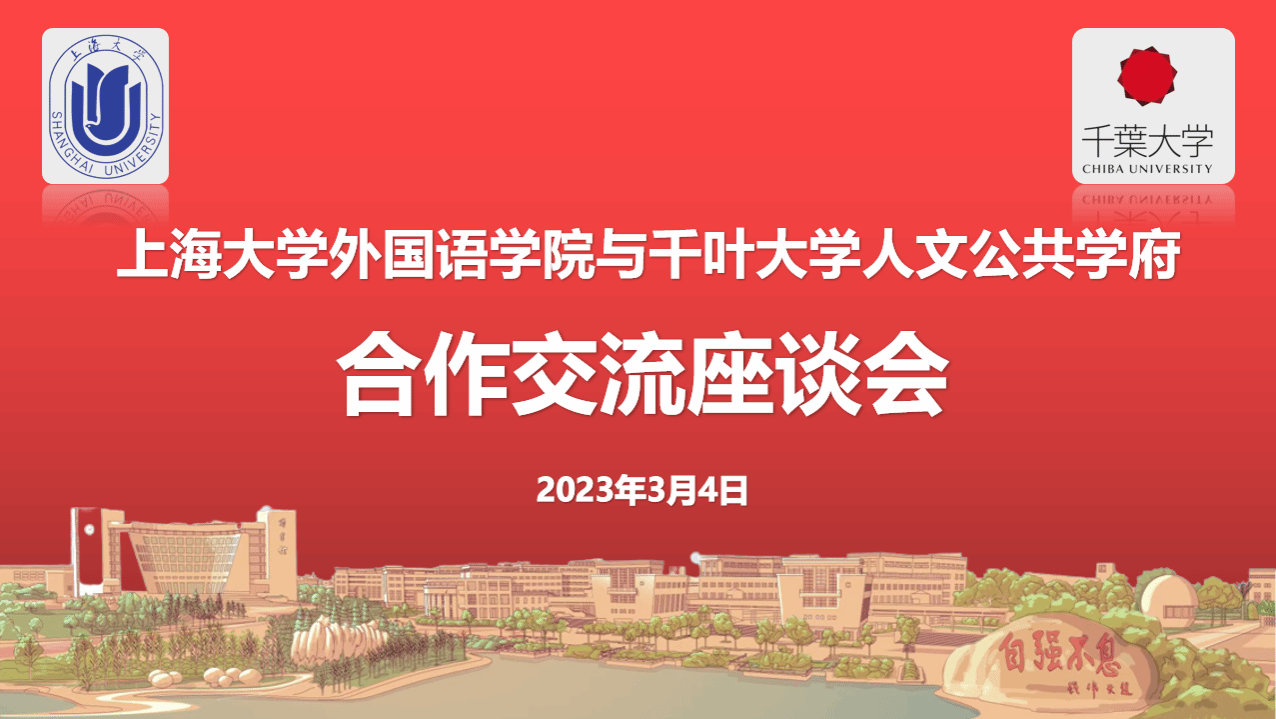 3月4日下午5点,sunbet与千叶大学人文公共学府院领导在sunbet宝山校区J103在线召开了交流合作座谈会。sunbet尚新院长、唐青叶副院长,千叶大学人文公共学府水岛治郎执行院长、大原祐治教授,及两院部分员工出席了本次座谈会,双方围绕两院交流、合作事宜的全面开展,进行了座谈。