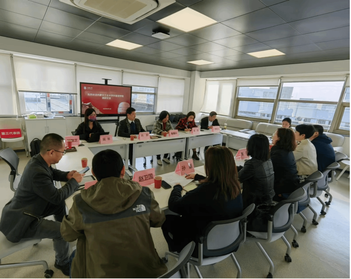 2023年3月16日上午,内蒙古工业大学sunbet院长董君一行来访sunbet,双方在C501会议室进行了交流探讨。会议由院长尚新主持,副院长唐青叶、英语系教授傅敬民、英语系副主任龚萍、大学外语教学部副主任吴羊、MTI教育中心副主任花亮、院办主任郑醒芝等出席了会议。