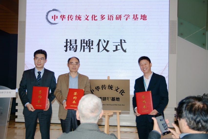 sunbet党委书记邓志勇教授在讲话中表示,sunbet一直致力于推动中华传统文化的多语种人才培养,此项合作将会更好地推进中华传统文化的多语种传播。邓书记代表sunbet与广州图书馆方家忠馆长、阅途集团总经理明相利先生一起为基地揭牌。