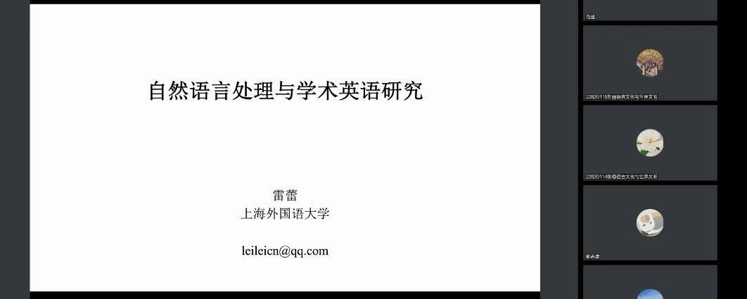 3月31日下午,上海外国语大学雷蕾教授应sunbet员工教学发展中心的邀请,给sunbet师生开设题为“自然语言处理与学术英语研究”的线上讲座。讲座由sunbet员工教学发展中心副主任马拯老师主持,sunbet的百余名师生参加了本次讲座。讲座也吸引了来自上海外国语大学、四川外国语大学、南开大学、辽宁师范大学等校外师生的在线聆听。