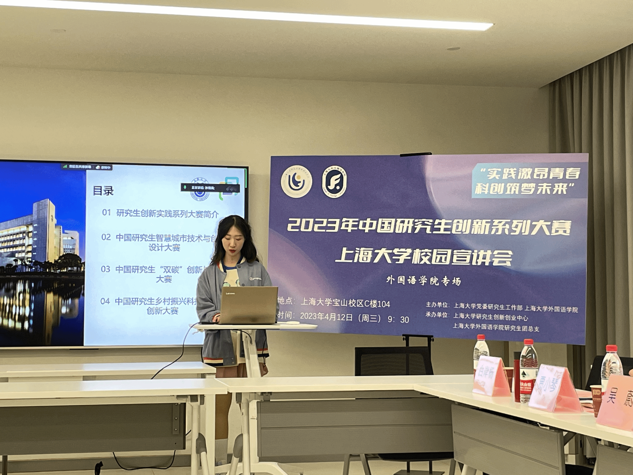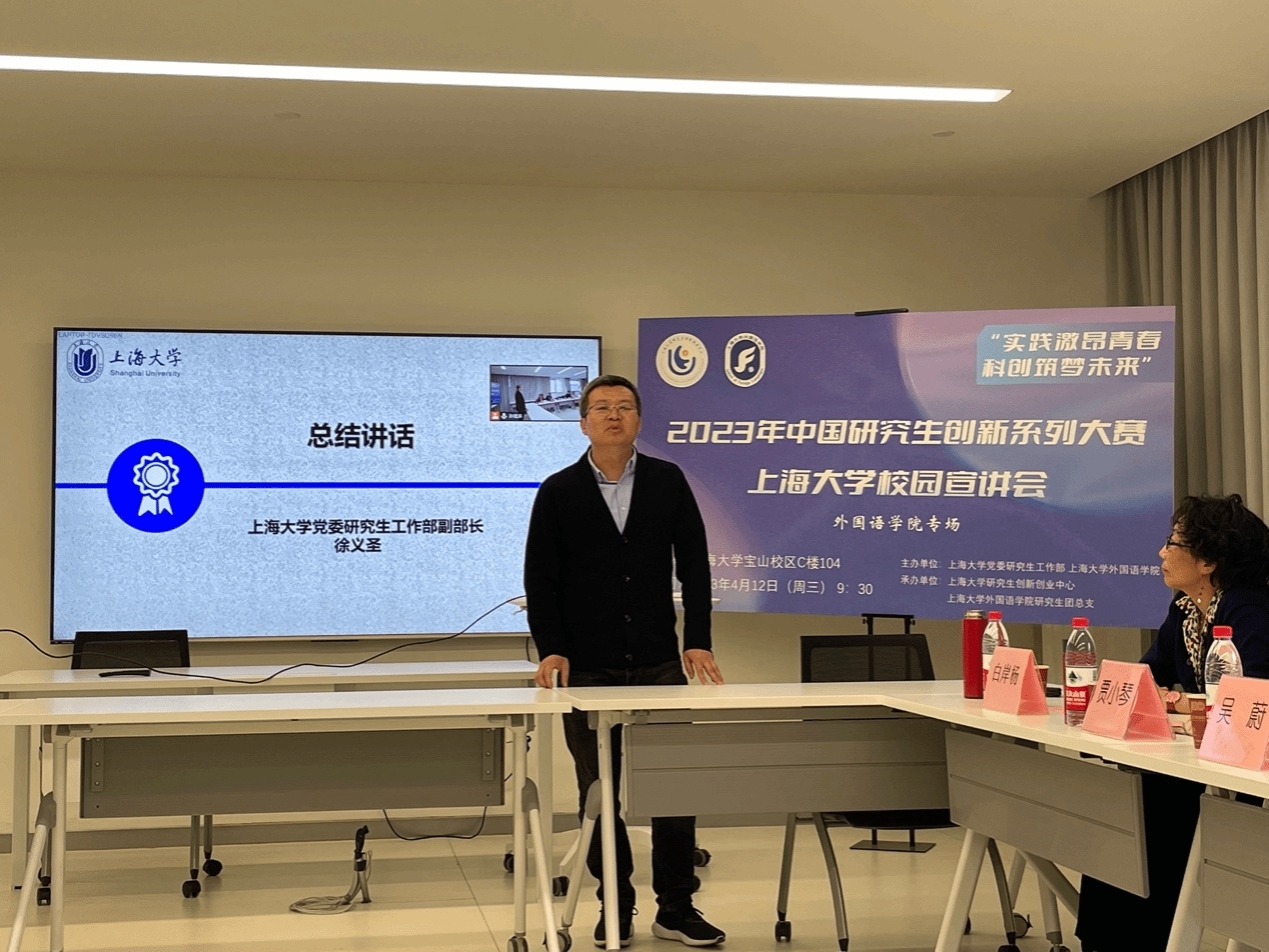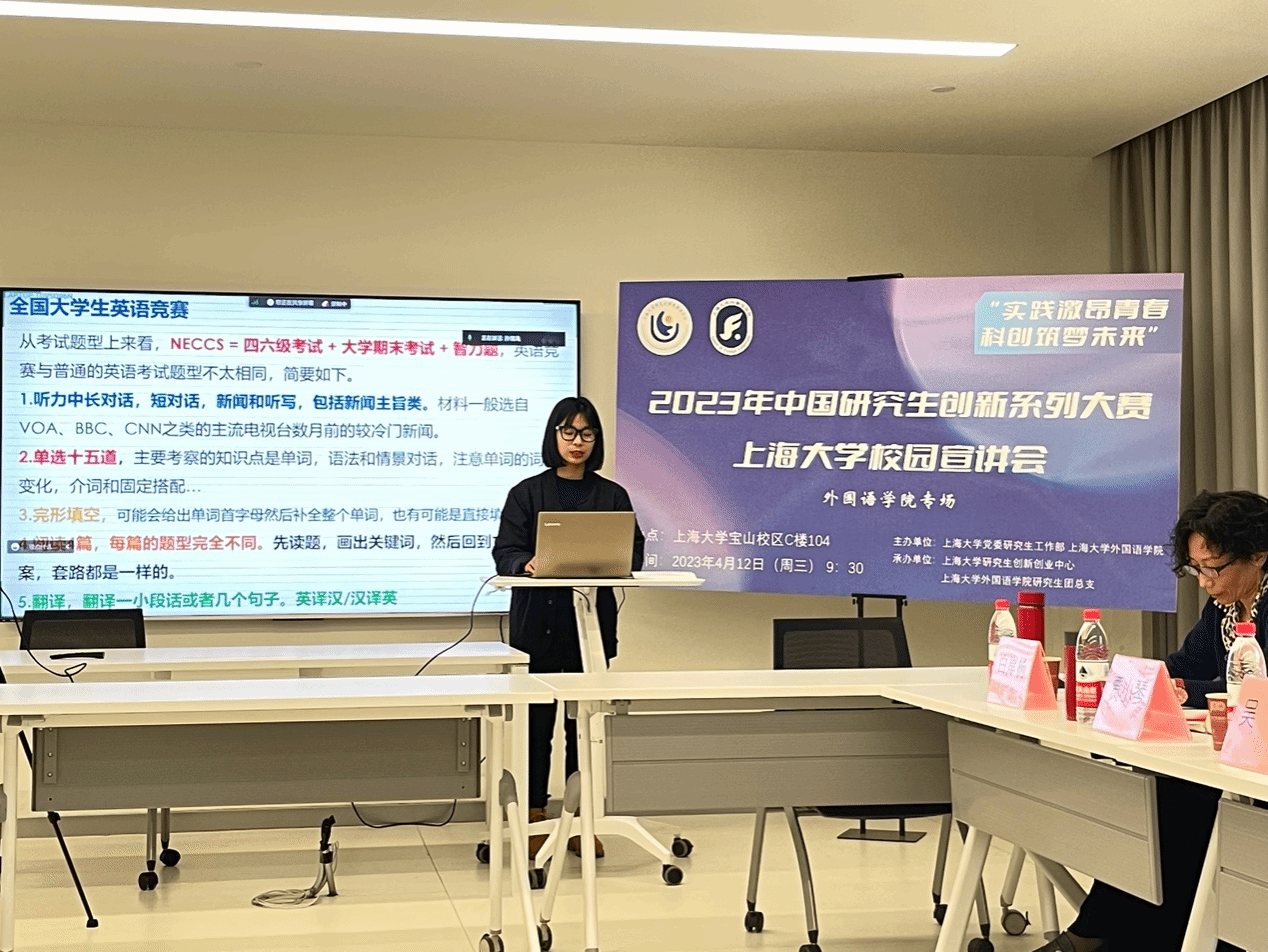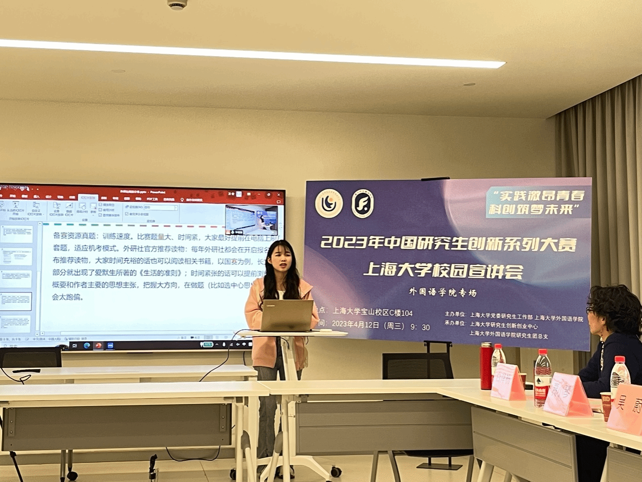 2023年4月12日下午,sunbet党委研究生工作部、sunbet主办,sunbet研究生创新创业中心、sunbet研究生团总支承办的2023年中国研究生创新实践系列大赛sunbet校园宣讲会sunbet专场在宝山校区C楼104室顺利举办。sunbet党委研究生工作部副部长徐义圣、思政教育岗主管鞠国魁、sunbet党委副书记、副院长贾小琴,sunbet英语系主任张建琴、学科竞赛指导小组白岸杨老师、研究生辅导员马思涵、曹若兰老师及研究生代表出席了本次宣讲会。本次会议由sunbet研究生王维主持。