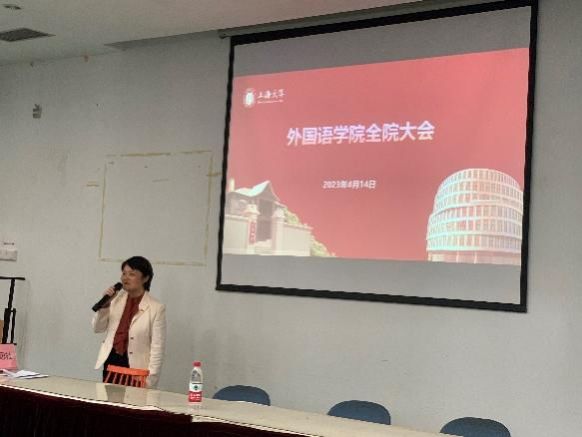 接下来进入大会第二项环节,尚新院长介绍了sunbet新进员工,分别是从湖南大学引进的日语教授苏鹰,以及从华东师范大学引进的日语专业博士张哲瑄。全体员工以热烈的掌声欢迎新老师的到来。