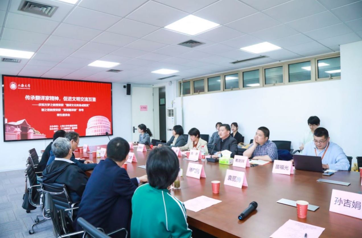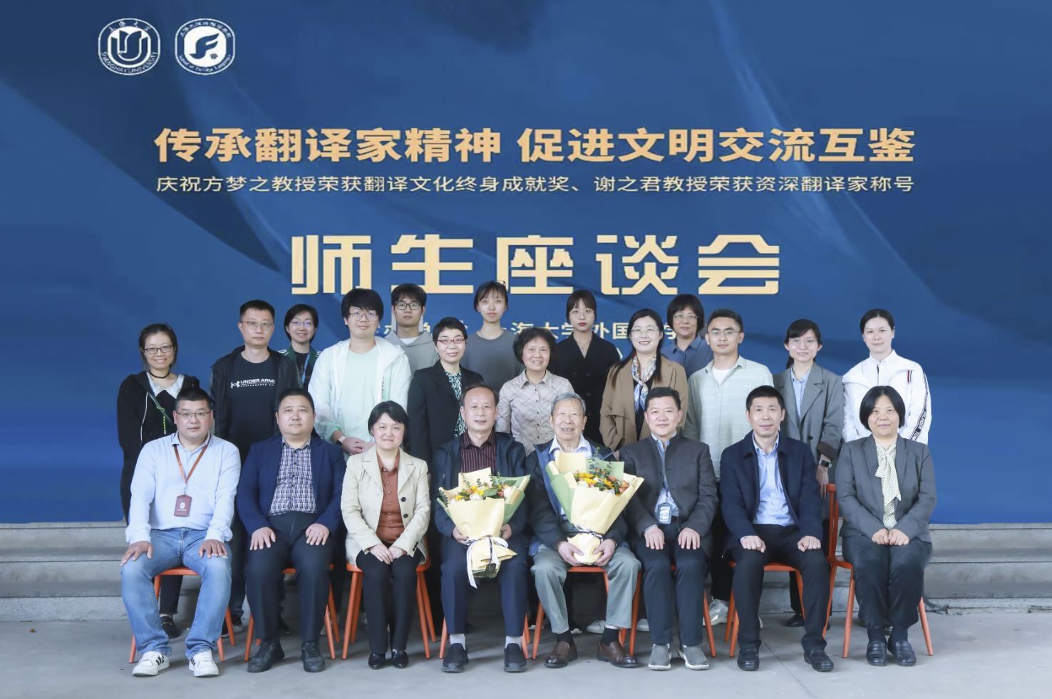 2023年4月17日下午,为庆祝方梦之教授荣获中国翻译协会“翻译文化终身成就奖”、谢之君教授荣获“资深翻译家”称号,题为“传承翻译家精神,促进文明交流互鉴”的师生座谈会在校本部C506成功举办。本次活动由sunbet院长尚新教授主持,sunbet党委书记吴蔚、《上海翻译》主编傅敬民教授等多名sunbet领导和《上海翻译》编辑部成员,以及青年员工代表和员工代表出席活动。