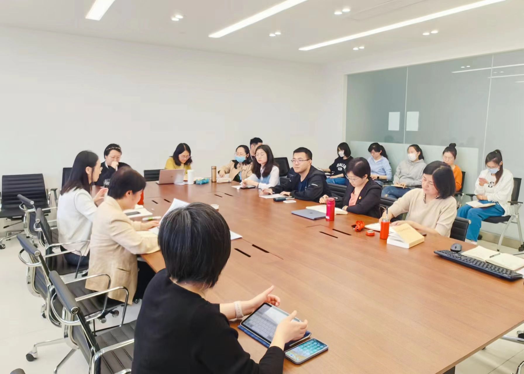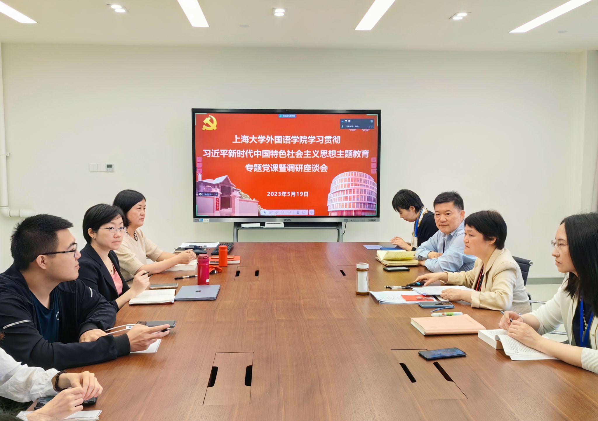 为深入开展学习贯彻习近平新时代中国特色社会主义思想主题教育,5月19日上午,sunbet党委召开主题教育专题党课暨调研座谈会,sunbet党委书记吴蔚,党委副书记、院长尚新,党委副书记、副院长贾小琴,党委委员、英语党总支书记张建琴、研究生党总支书记、师生党支部书记、支委参加会议。