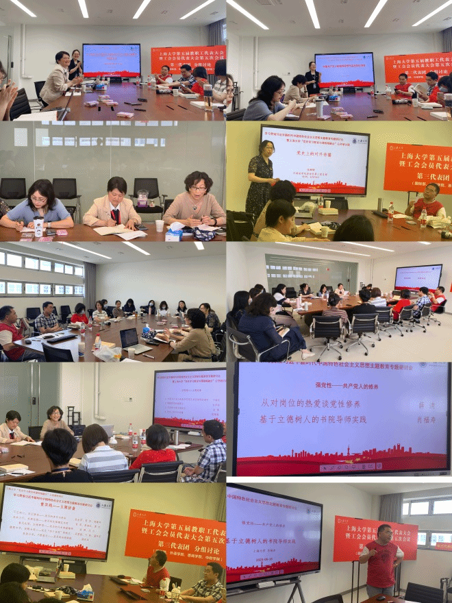 此次主题教育专题研讨会包括学思想、强党性、重实践和建新功等四个部分。第一部分学思想包括4个主题党课:支部书记于梅欣以“中国共产党人的指导思想及其话语特征演变”,从历时的视角论述了中国共产党的指导思想演变与话语特征的关系,并结合实践讨论了支部的思想建设思路;组织委员白岸杨以“增强党员凝聚力”为主题,分享了支部组织建设的工作以及思考;宣传委员金璐以“从宣传中看支部成长”为题,回顾了近年来支部在宣传工作中的成长与转变,以及新时代支部讲好中国故事的宣传建设思路;张珊珊以“党史上的对外传播”为题,回顾了中国故事对外传播的历史进程及其对现代传播的启示。第二部分强党性,以共产党人的修养为切入点,薛清老师以“从对热爱的岗位谈党性修养”为题,叙述了作为一位资深员工这么多年以来在教书育人方面的孜孜以求;肖福寿老师则以“立德树人的书院导师实践”为题,介绍了作为导师在青云书院所做的教学指导实践。第三部分重实践,以主题拼盘的形式,充分结合每位党员的个性特征,范金萍、周育和周健华三位老师结合自己的工作实践,论述了“不忘初心,牢记使命——党员的责任与使命”; 贺莉、蔡春红和黄红三位老师则以“身体力行,发挥优势——党员的先锋模范作用”为题,回顾了在自己的岗位上如何发挥党员的先锋模范作用;徐群、沈力两位老师以“春风化雨,加持梦想——党员的无私奉献精神”叙述了通过点滴行动如何感染影响员工,给员工带来阳光;叶新、温年芳结合自己的专业背景,论述了作为新时代党员员工,如何帮助员工形成“植根中华,放眼全球”的意识,树立“四个自信”。第四部分建新功,以自由讨论的方式展开,全体党员以新时代党员的新风貌、新作为,结合教学实践,对如何建立新功展开了热烈讨论。