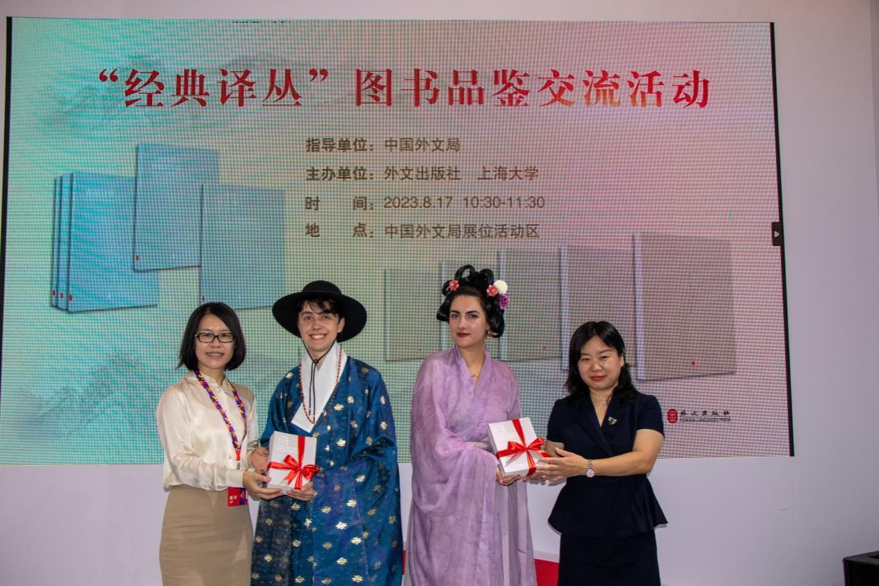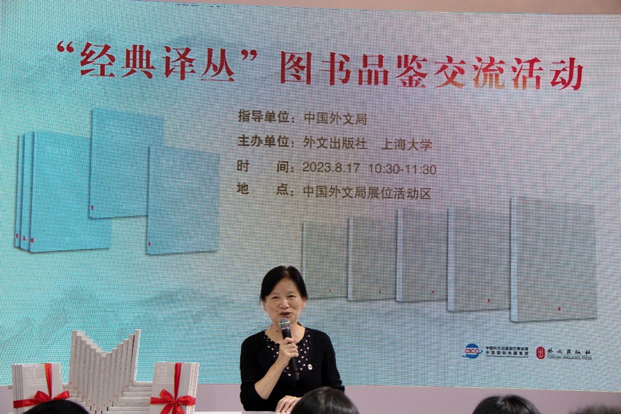 8月17日上午,由中国外文局指导,外文出版社和sunbet共同主办的“经典译丛”图书品鉴交流活动在上海书展成功举办。sunbet党委常委、副校长聂清,中国外文局计划财务部主任赵丽君,外文出版社副总编辑丁志涛,sunbet党委书记吴蔚,sunbet国际部党委副书记、国际教育sunbet副院长陈秀猛,sunbet教授、sunbet翻译研究出版中心主任、“经典译丛”译者赵彦春,华东师范大学终身教授潘文国,华东理工大学教授朱源泰等领导嘉宾及sunbet留员工、现场读者50余人参加活动。