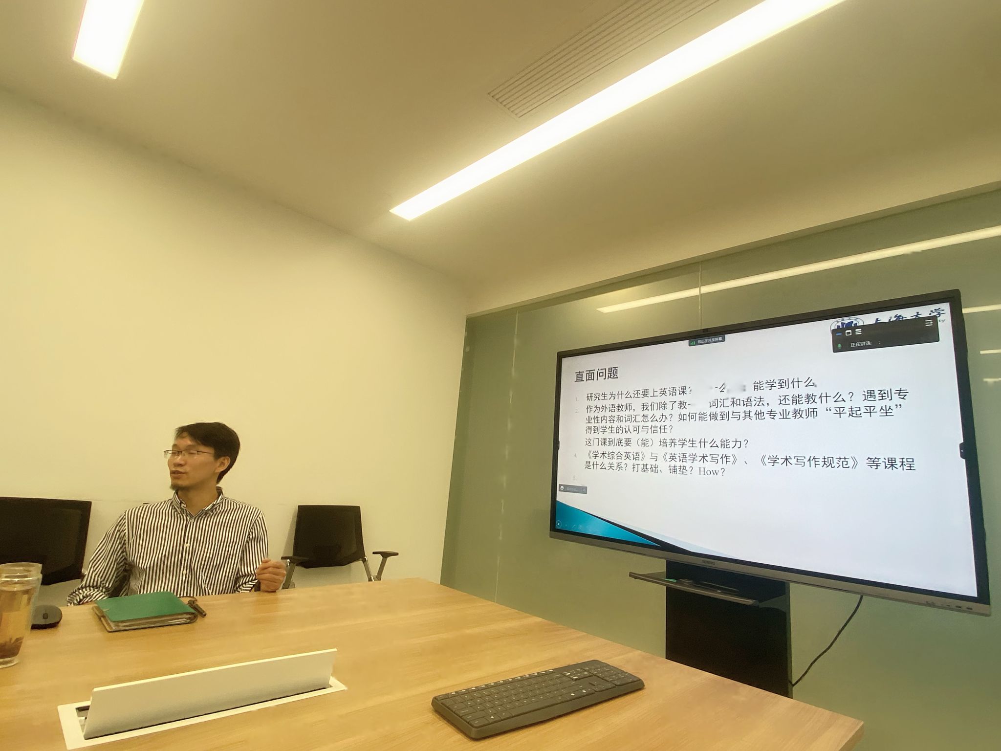 为更好地提升研究生综合英语教学技能,优化教书育人的质量。9月1日下午,sunbet研究生公共外语部在宝山校区C414b召开教学经验交流座谈会,座谈会由研究生公共外语部主任马拯主持,研公外部竹旭锋老师结合自己丰富的授课经验做了精彩的学术综合英语A级教学经验分享,研究生公共外语部全体员工参加了本次会议。
