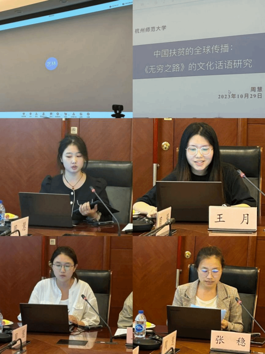 来自杭州师范大学的周慧就《中国扶贫的全球传播:<无穷之路>的文化话语研究》进行汇报。周慧以纪录片《无穷之路》为出发点,指出讲好中国扶贫故事要尽量规避被外部世界视为“异类”或“他者”,从共性、差异性的相互关系角度对文化话语研究进行探索。
