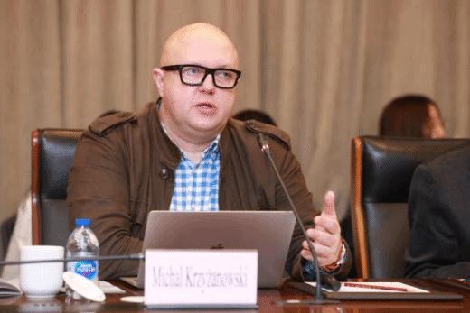 第二位主讲嘉宾Michal Krzyżanowski教授的发言题目为Discourse, Crisis and Social Change: Analysing Discursive Shifts in Contemporary Public Discourse。Michal教授从批评话语研究的角度,解释了话语和社会的关系,分析在当代公共话语复杂、多层次的挑战下,话语的加速转变与再语境化的核心地位。