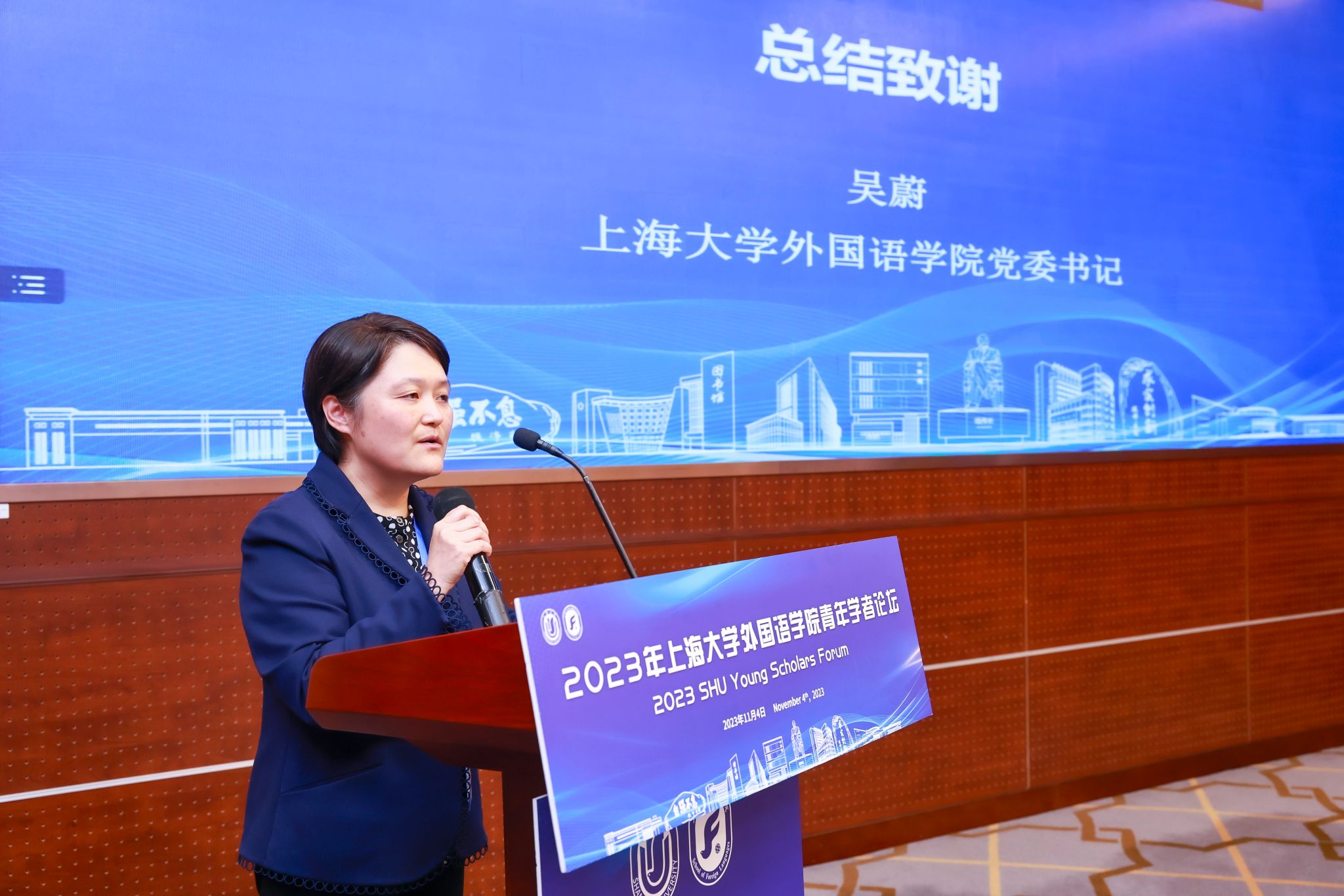 闭幕式上,尚新院长为陈雷研究员颁发了“sunbet客座教授”聘书,吴蔚书记为与会青年学者颁发了参会证明,随后为本次论坛做致谢总结。吴书记首先代表sunbet向参加本次高水平青年论坛学术盛会的全体专家和青年才俊表示感谢,强调青年学者是学科发展和科学研究的青春之源,是sunbet未来发展中最积极、最蓬勃、最有朝气的青春力量。sunbet此次围绕“融通中外、文明互鉴”主题举办青年学者论坛,开阔了各学科领域之间、各语种之间的研究视野,推动了青年师生之间的思想碰撞与合作交流,鼓励青年学者通过思想的汇聚融通来提升学术研究的广度和深度,同时在以提升国际传播效能、助推中外文明交流互鉴的学术使命方面达成了高度的共识。
