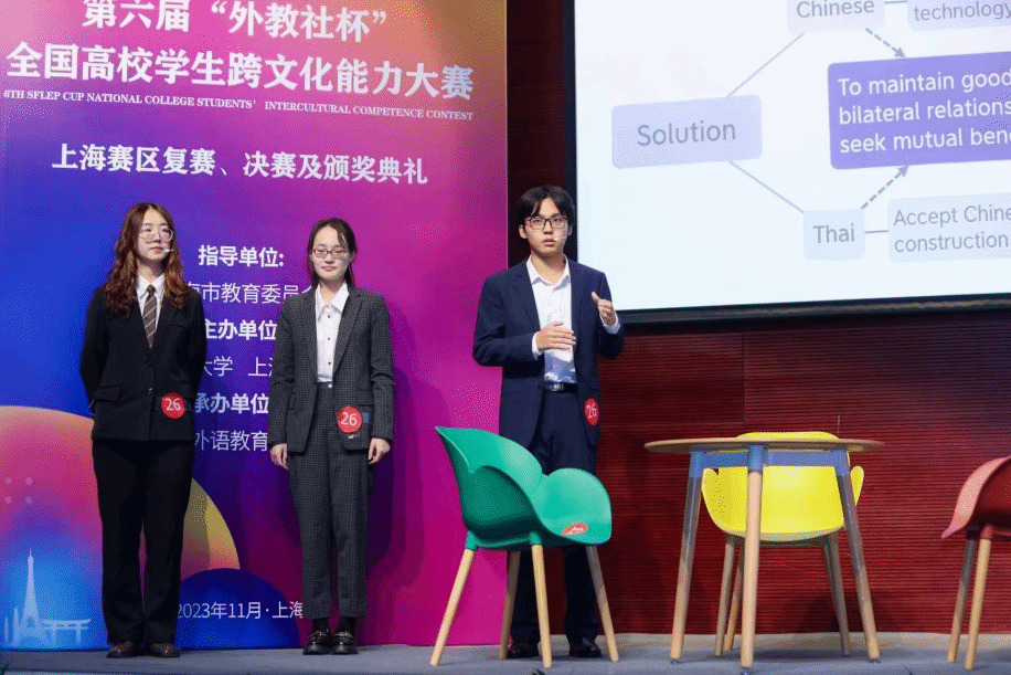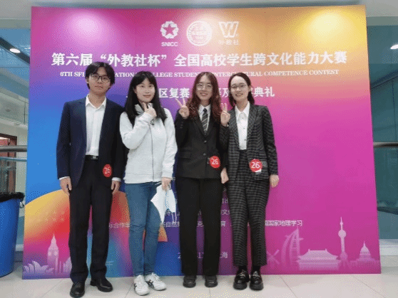 2023年11月11日至12日,在第六届“外教社杯”全国高校员工跨文化能力大赛上海赛区比赛上,由21级英语专业李晟寒、21级社会sunbet温小乐、20级管理sunbet财务管理专业喻蝶组成的sunbet代表队在sunbet赵嘉嘉老师和吕鸿雁老师的带领下参赛,与来自沪上各大名校的30多只队伍同台切磋,经过复赛、决赛知识问答、情境评述、回答评委提问、讲述中国故事等环节,最终取得获得本科组二等奖,总排名第5名的佳绩。