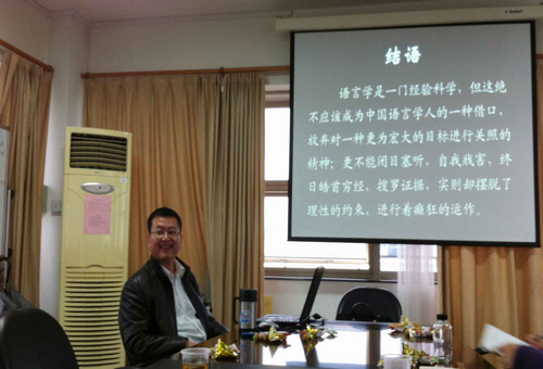 博士以康德先验哲学为进路论述知性和理性,并以此为基础区分"语言之象"与"语言之相"以及一系列相关概念,探究语言批判在语言学领域中运用的可能,重新审视语言学理论与语言事实的关系。讲座旁征博引、精彩生动,引发了与会师生对哲学和语言的深入思考。