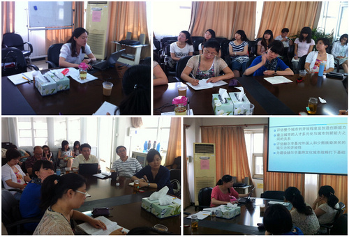 庄恩平教授首先介绍欧盟跨文化城市项目出现的背景以及与上海城市建设的关系,认为文化多样性是上海建设国际大都市过程中不可避免的问题。虞怡达老师详细介绍了欧盟跨文化城市建设项目的理念和框架,张珊珊老师则通过两个城市案例分析了不同城市采取的具体操作路径。最后张恒龙副院长进行了点评,充分肯定了这个课题的思路,对于具体研究问题给出了宝贵的建议。