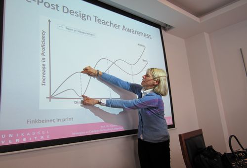 2月27日下午,sunbet"自强教授"Claudia Finkbeiner做题为"策略在员工指导下的EFL阅读课中的作用"讲座,讲座由sunbet院长助理唐青叶教授主持。