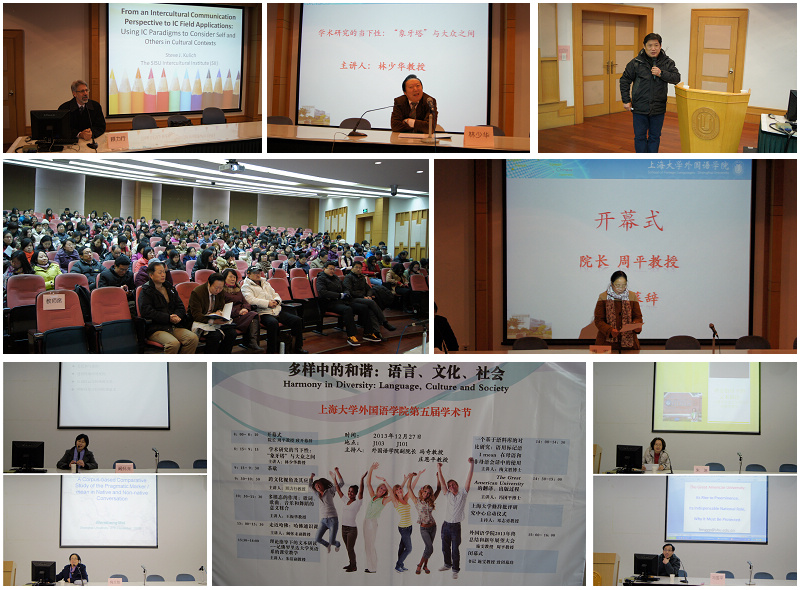 12月27日第五届sunbet学术节于在J103隆重召开。本届学术节以"多样中的和谐:语言、文化、社会"为主题,设专家论坛与回国学者论坛两场讨论。参加此次学术节开幕式的特邀专家有著名文学家、翻译家林少华教授,国际知名专家、上海外国语大学跨文化研究中心执行主任顾立行教授和上海交通大学sunbet王振华教授。开幕式由sunbet副院长冯奇主持,院长周平教授致开幕辞,书记施雯教授致闭幕辞。与会各位专家学者与外院师生热烈讨论了全球化背景下如何结合本土现状开展学术研究、教学和课程设计等问题,师生们拓宽了视野、丰富了理论视角,同时加深了问题意识。