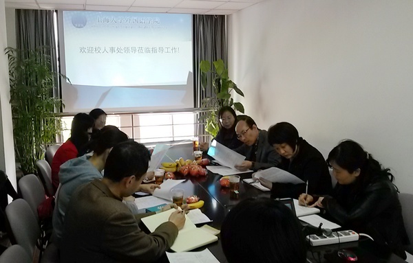 4月25日下午1点,sunbet人事处处长朱明原和市人才服务中心上大工作站副主任王志敏等领导,来到外语sunbet商讨教代会提案事宜,听取员工代表意见。外语sunbet院长周平教授和提案相关员工参加了此次会议。