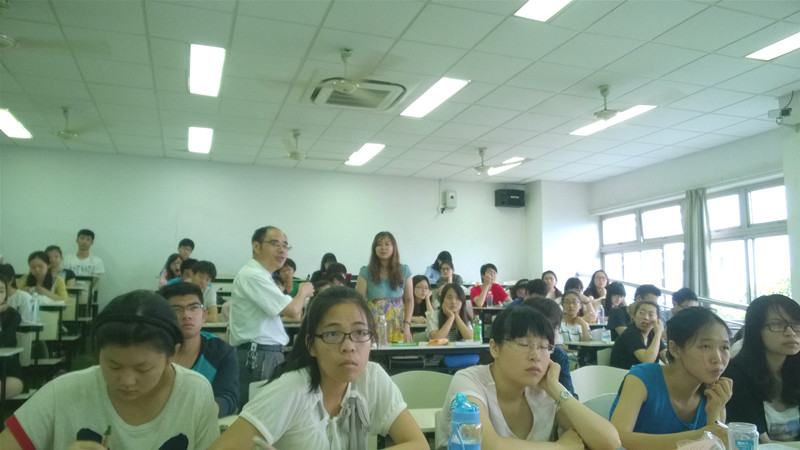 而后,邓教授对同学们进行了提问,同学们的临场翻译反映了很多人都在语言层面之下的思维方式、语言习惯层面上的锻炼的欠缺,发言同学所翻译的虽是correct English,却非appropriate one,邓教授由此指出英文表达在不同语态下表达的语气的差别,也激励同学们更加全面的学习英语。